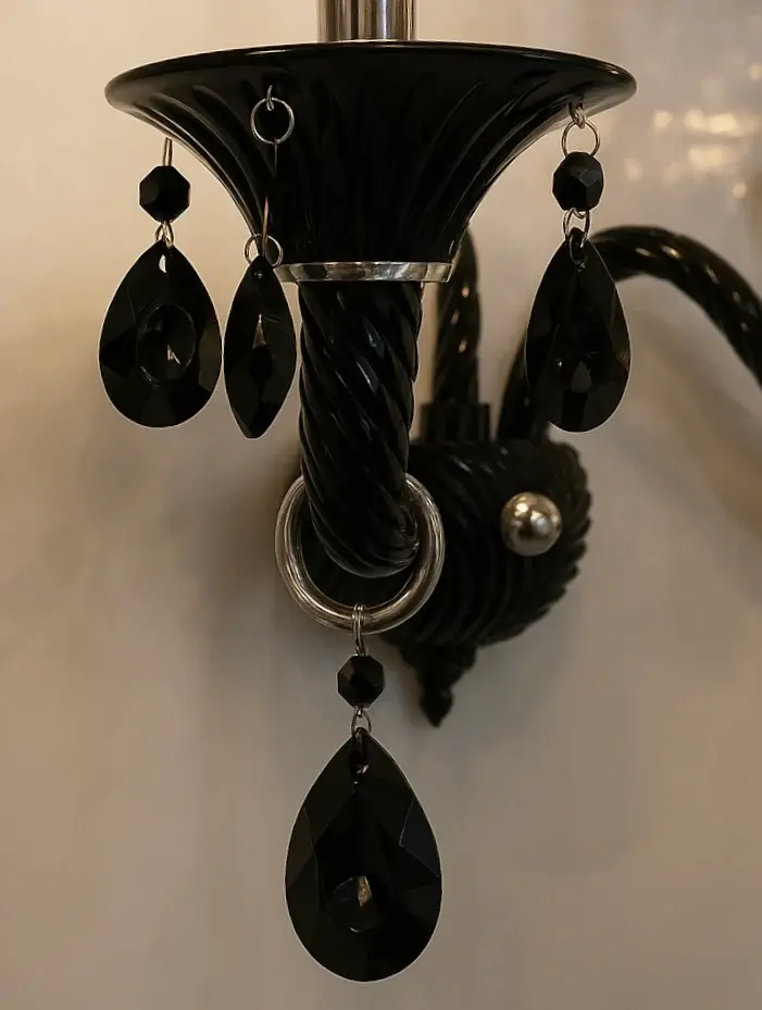 - Decorate with black crystal accents, this wall lamp brings a retro and elegant atmosphere to your room.