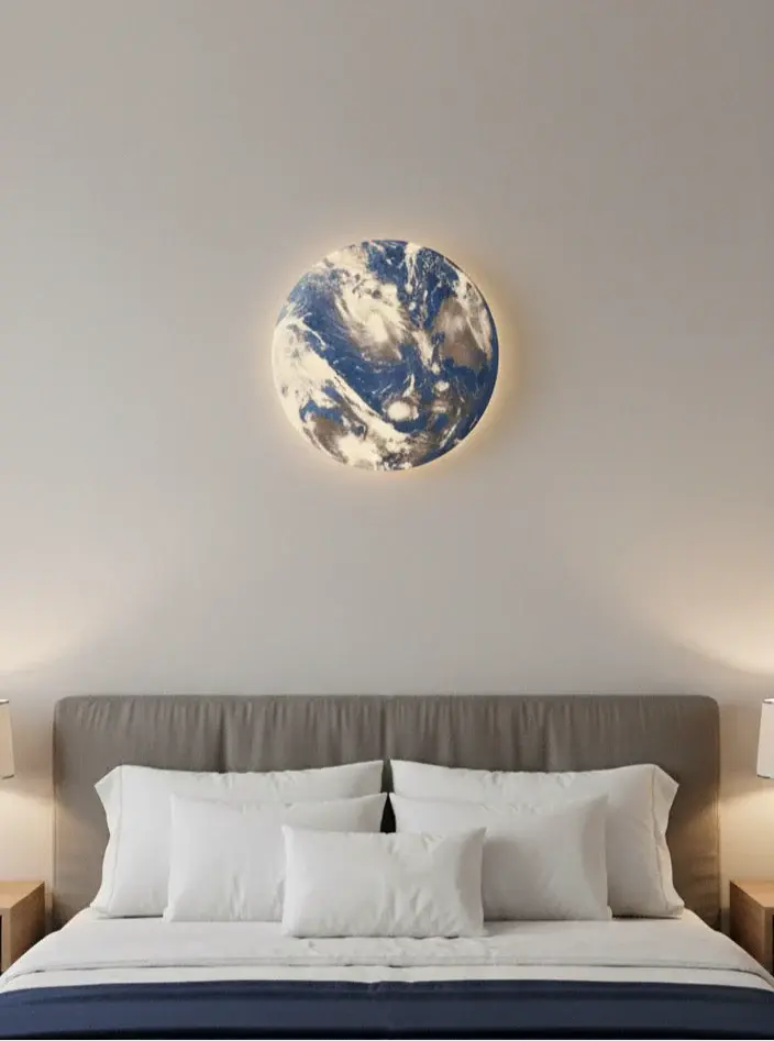 - Lunar LED ceiling light with a earth motif, acrylic shade with 52 cm diameter